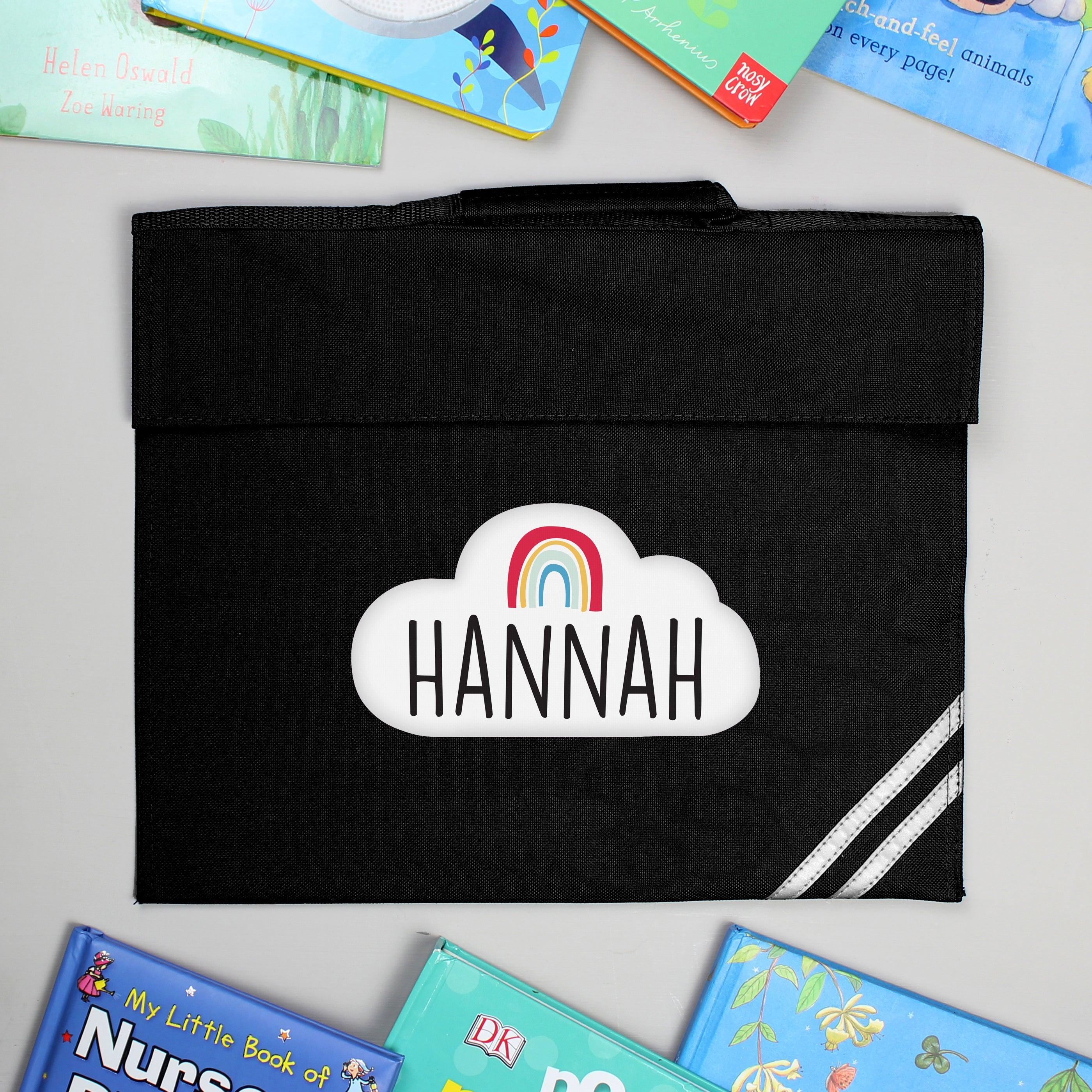 Personalised Rainbow Black Book Bag. This cute Personalised Rainbow Book Bag is perfect for a little ones first day back at school.