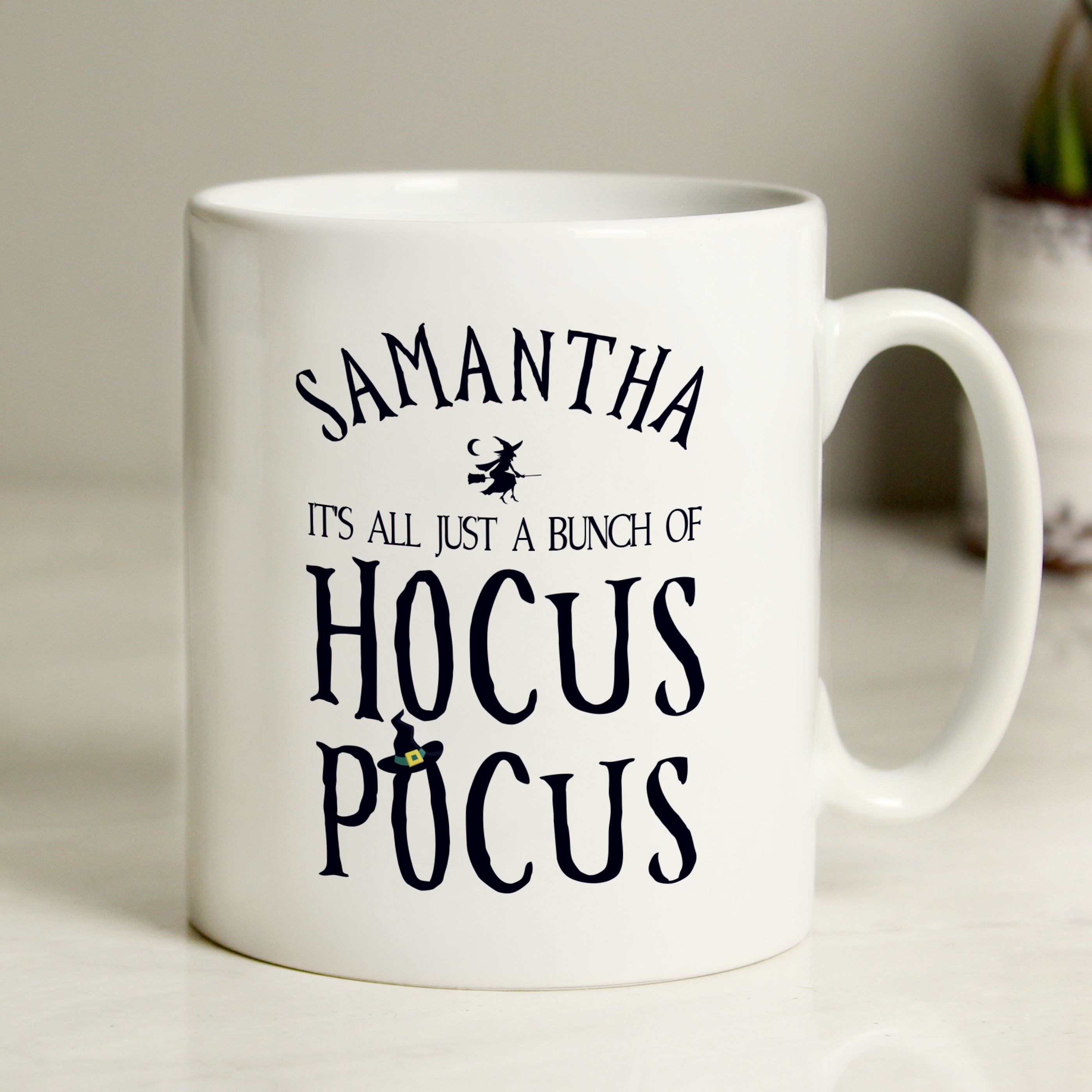 Personalised Halloween Hocus Pocus Mug. Make a Halloween lovers day with this personalised Hocus Pocus mug.