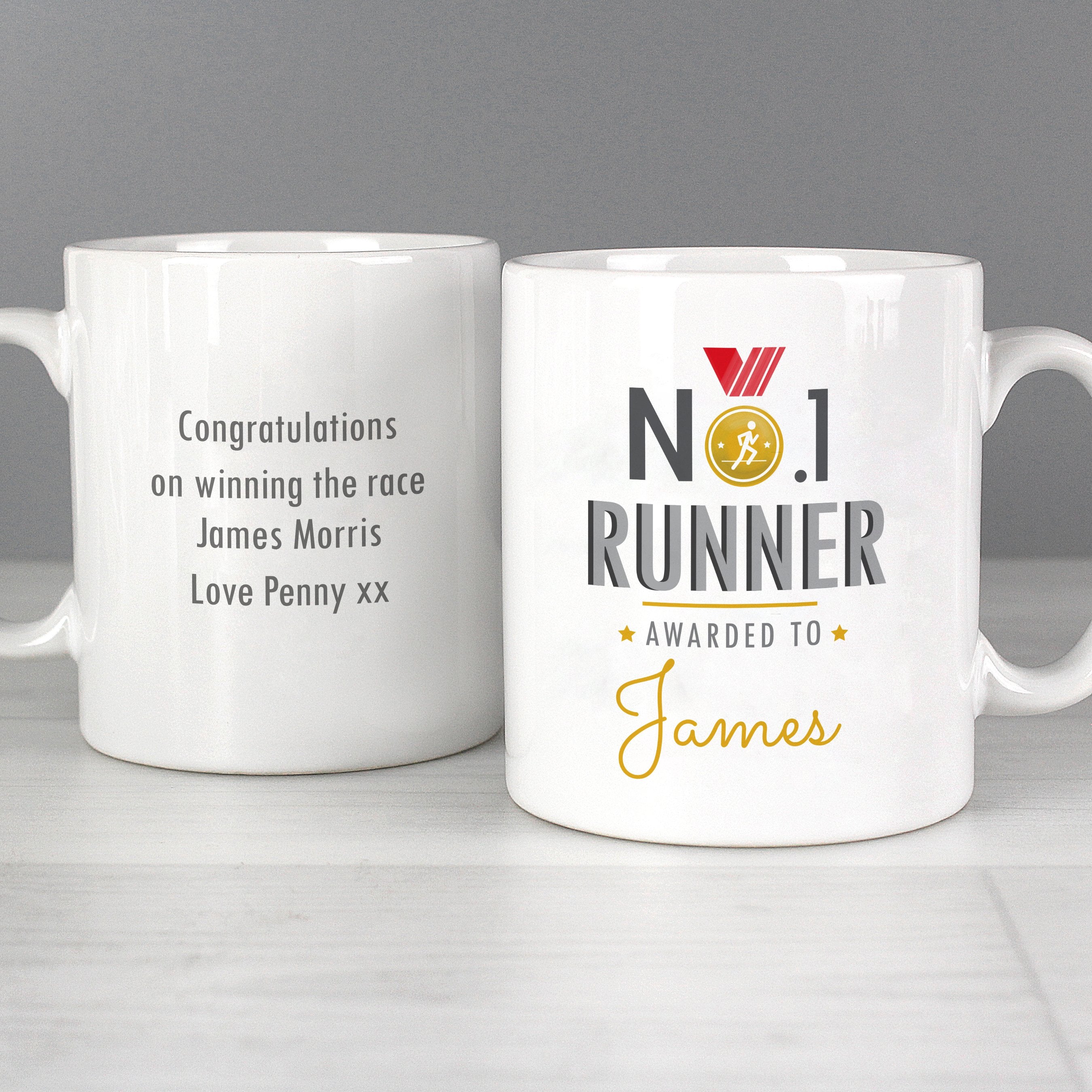 Personalised No.1 Runner Ceramic Mug. Our Personalised No.1 Runner Mug is an ideal gift for a gold medal worthy recipient!