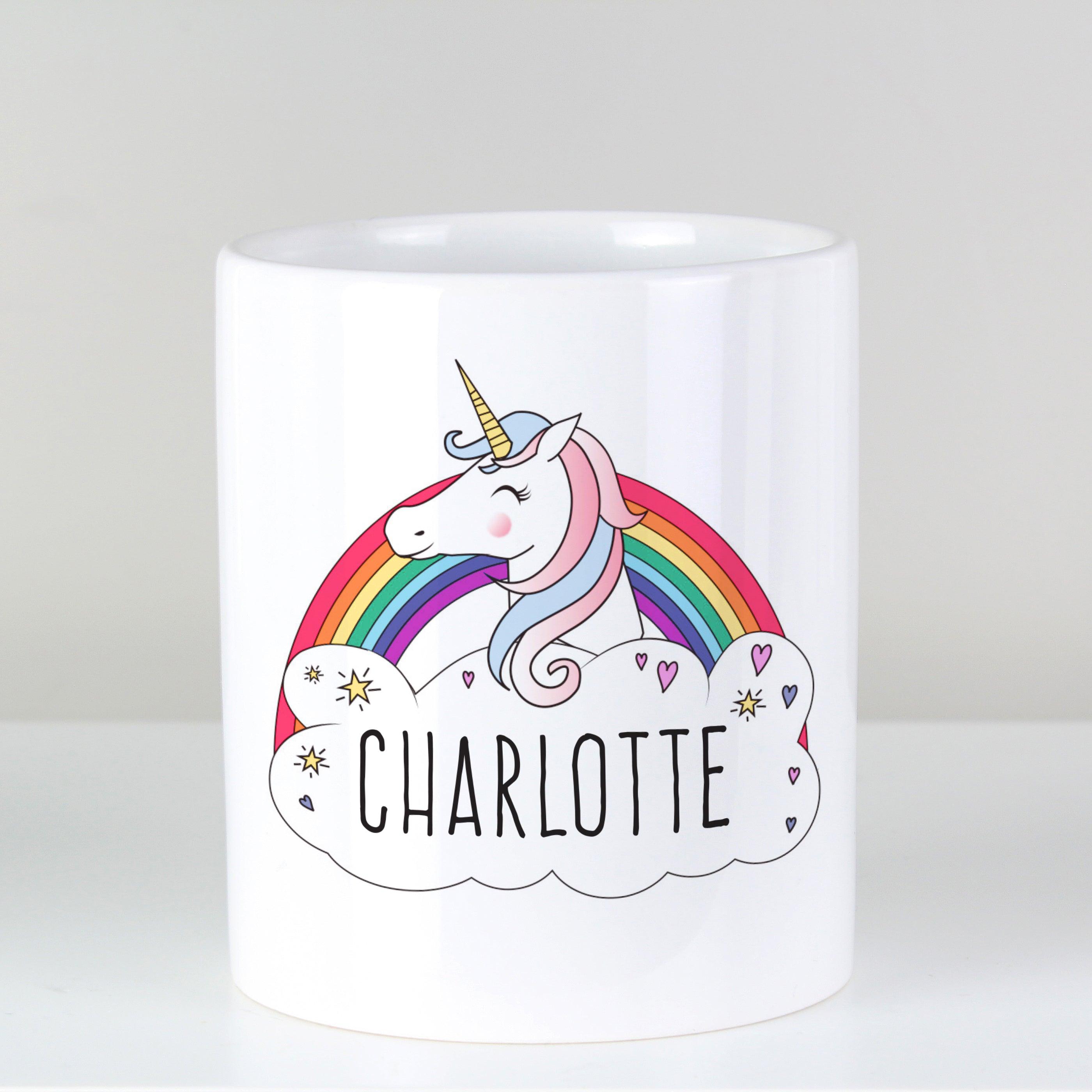 Personalised Unicorn Ceramic Storage Pot. This Personalised Unicorn Ceramic Pot is a great way to organise items like makeup brushes.