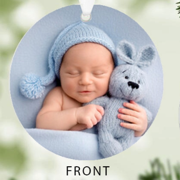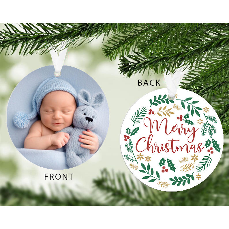 Please note: Your photo will appear on one side, the back of the decoration is fixed with the text "Merry Christmas" and a lovely Christmas design. This cannot be changed.