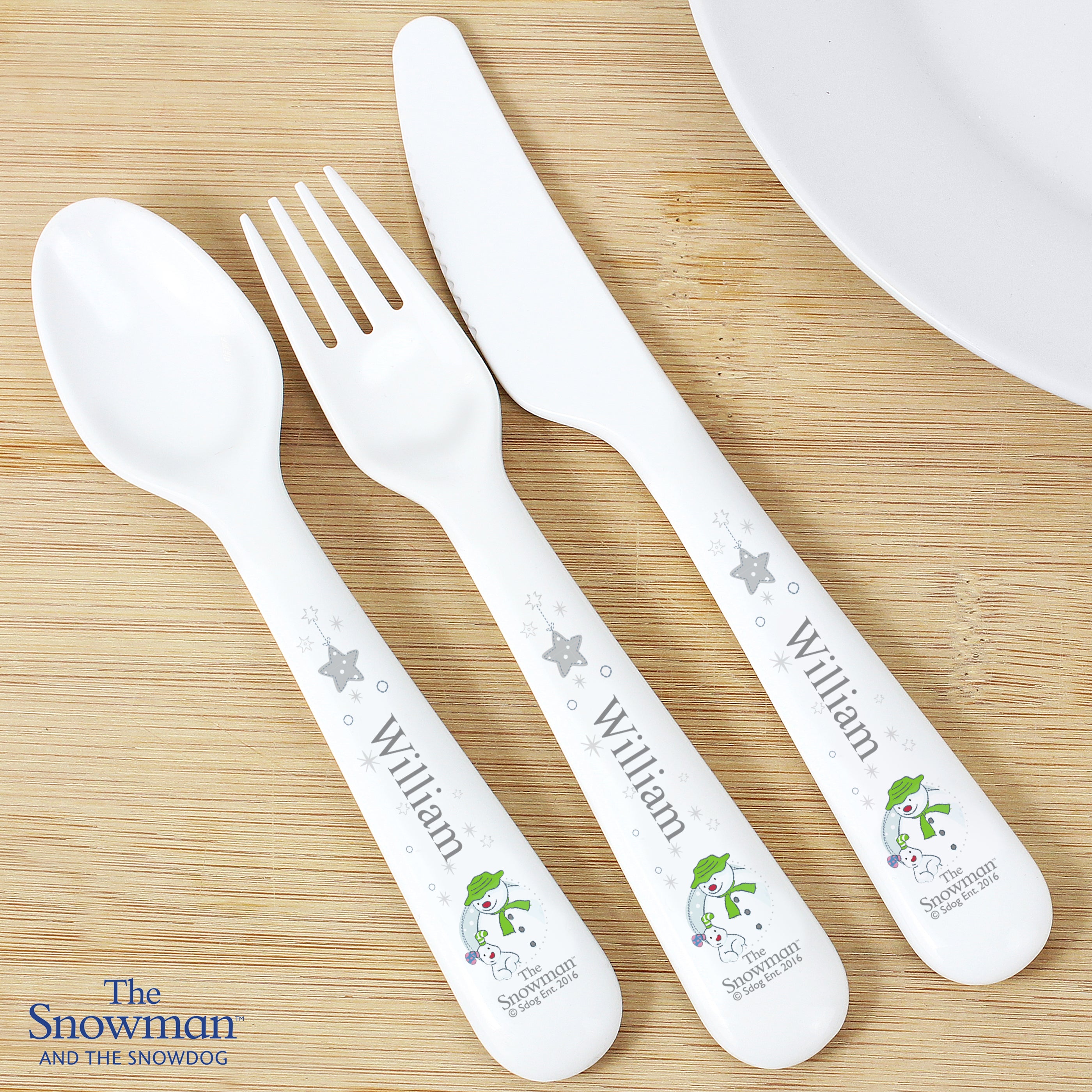 Personalised The Snowman and the Snowdog 3 Piece Plastic Cutlery Set