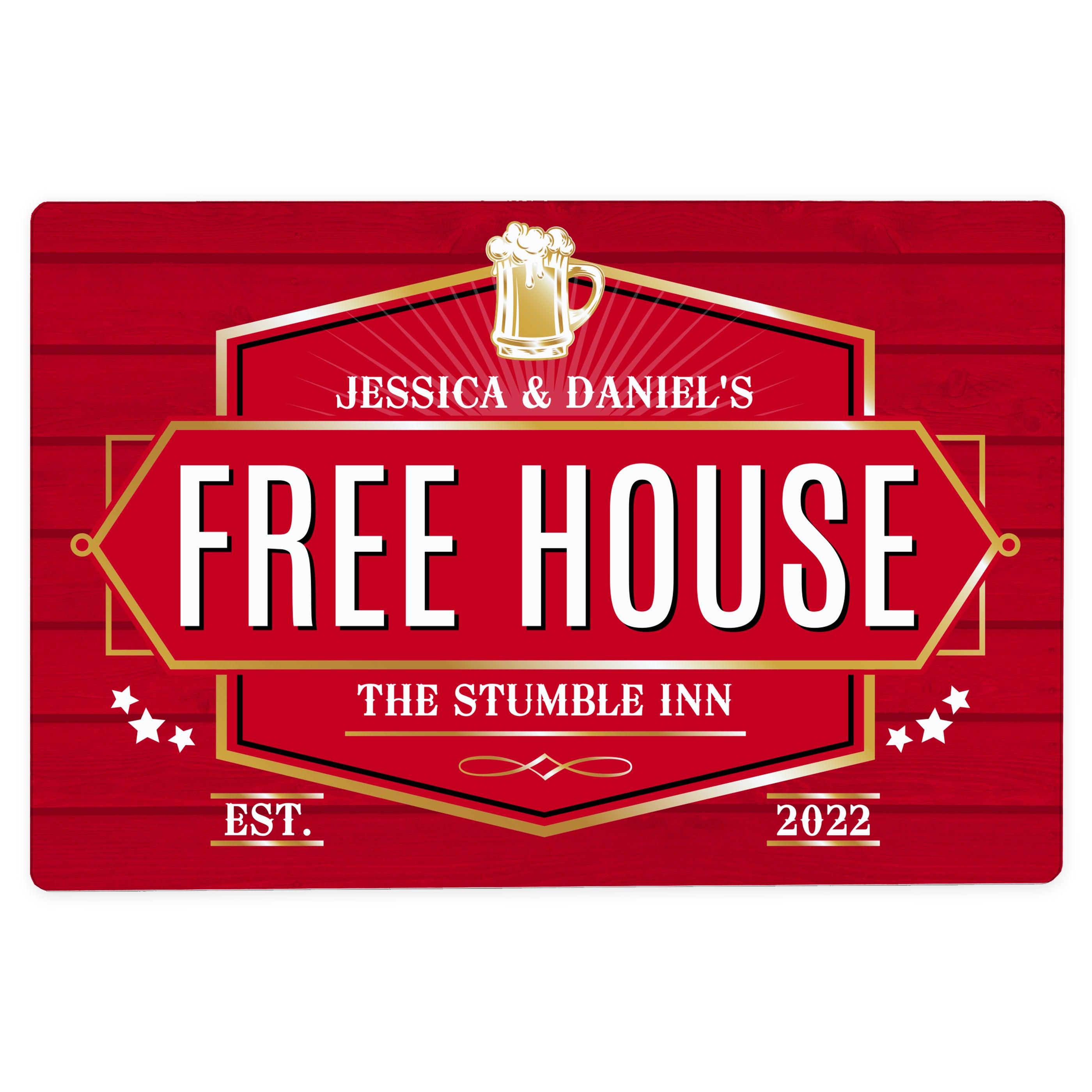 Please note that the wording"Free House" & "EST." is fixed text and cannot be changed.
