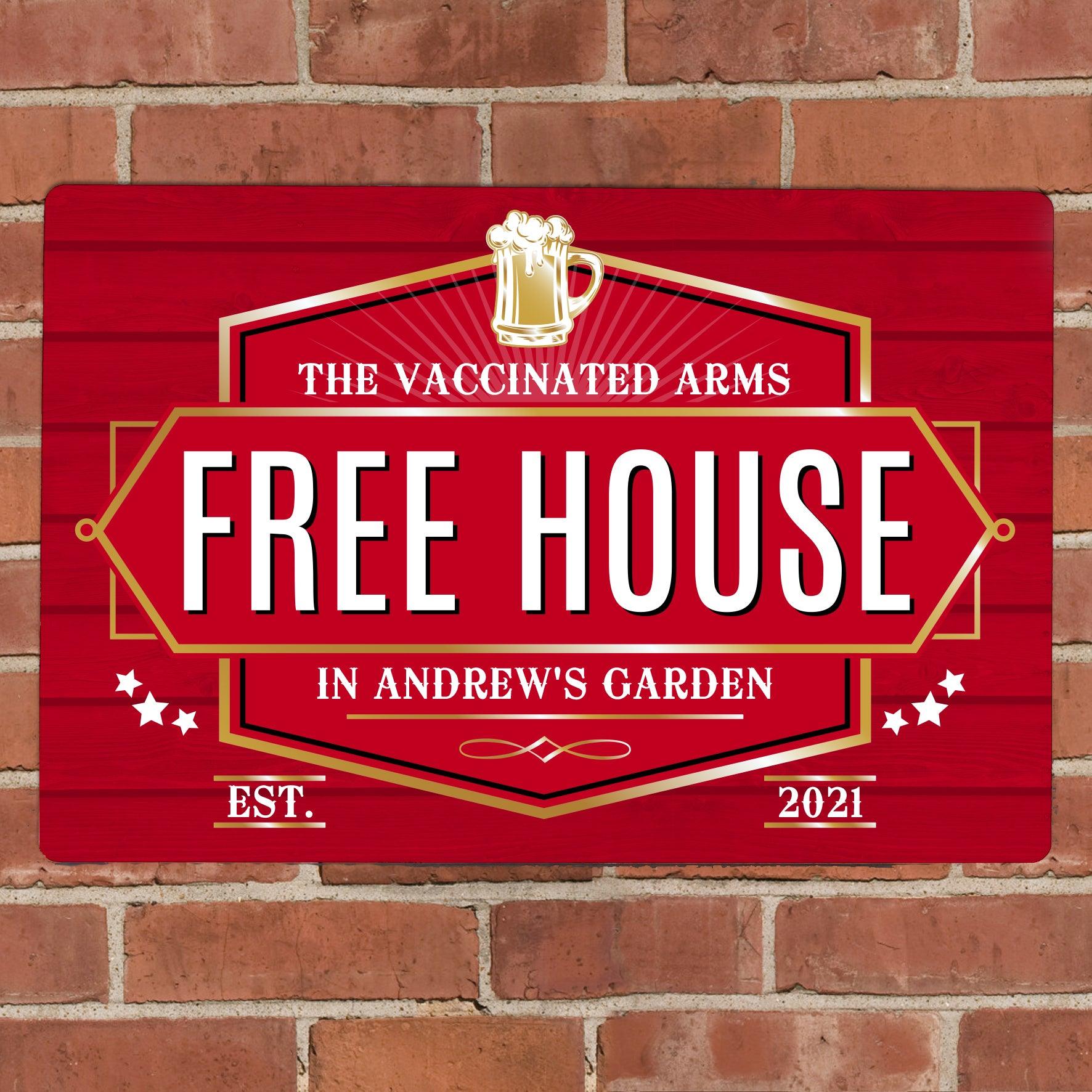 Personalised Free House Red Metal Sign. This personalised metal sign is the perfect gift for displaying proudly inside or outside your home!