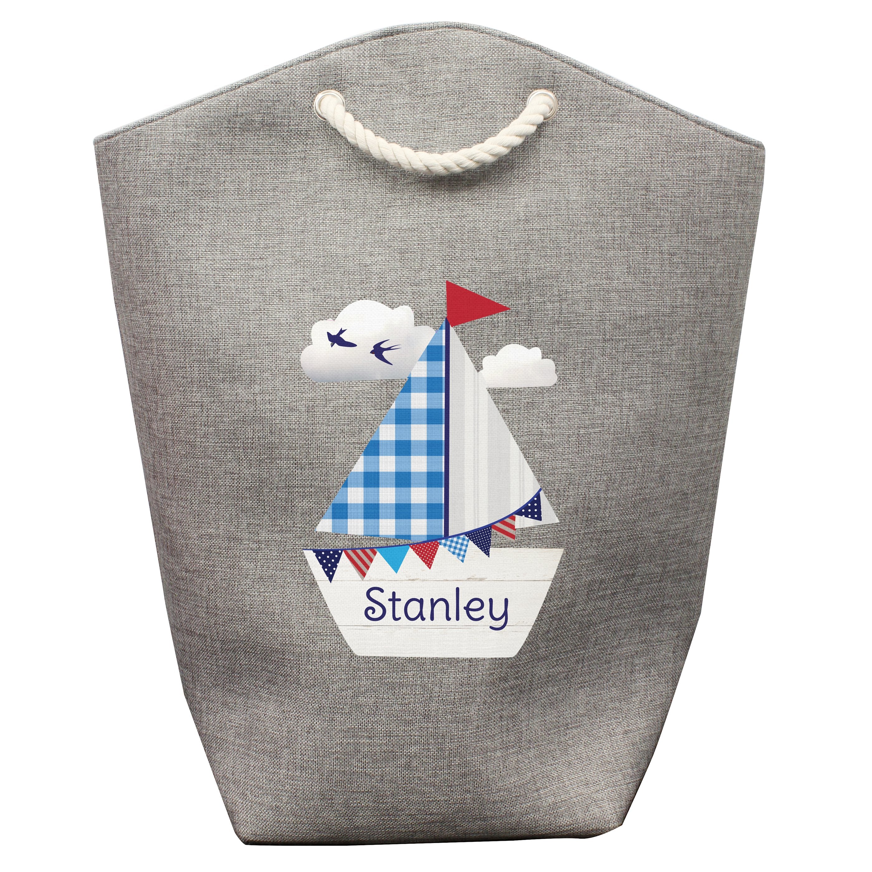 Personalised Sailboat Storage Bag. Our Personalised Sailboat Storage Bag is perfect for keeping a bedroom or bathroom tidy. It's ideal for storing toys or even for use as a laundry bag