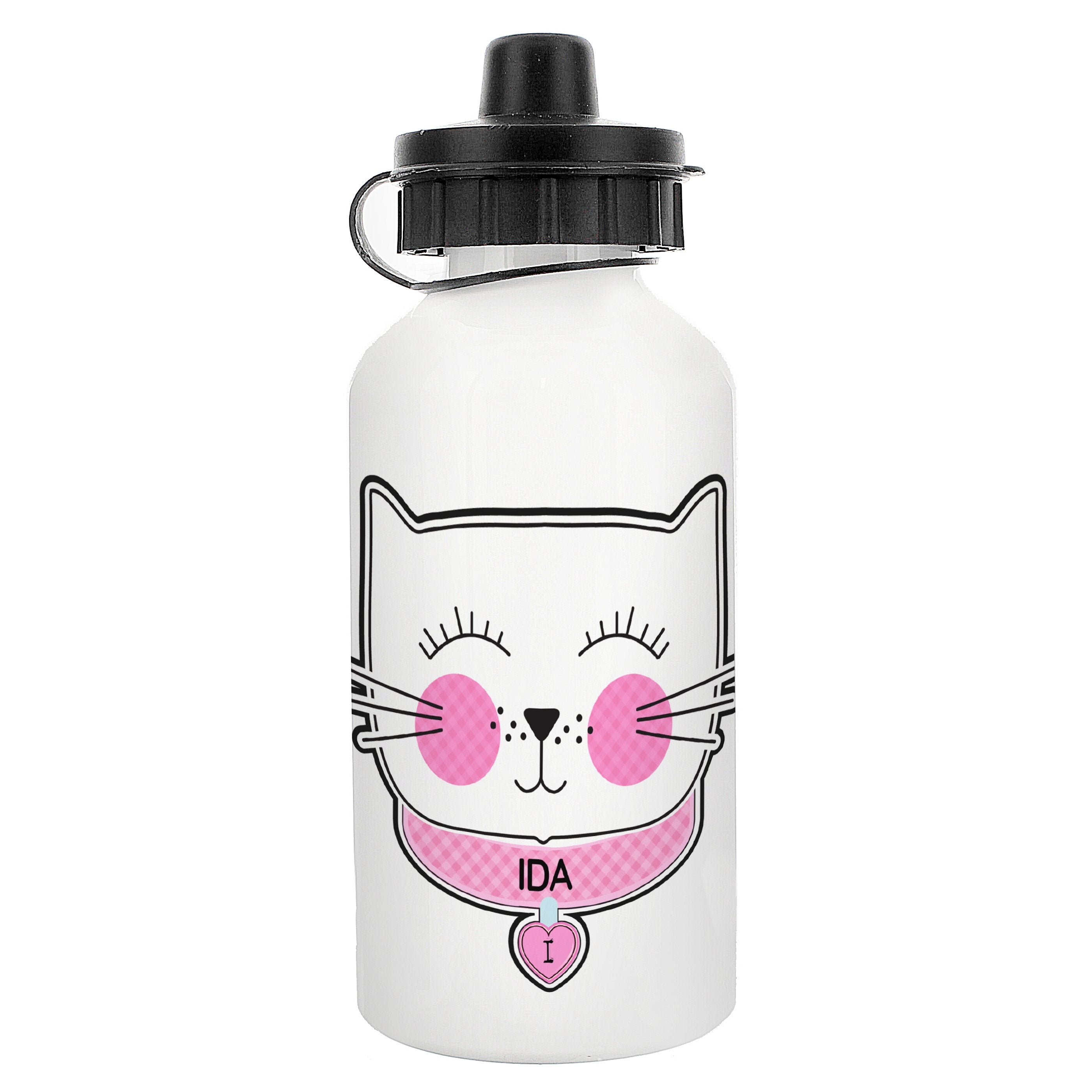 Personalised Cute Cat Drinks Bottle. This Cute Cat Drinks Bottle will ensure that she's the envy of all her friends!