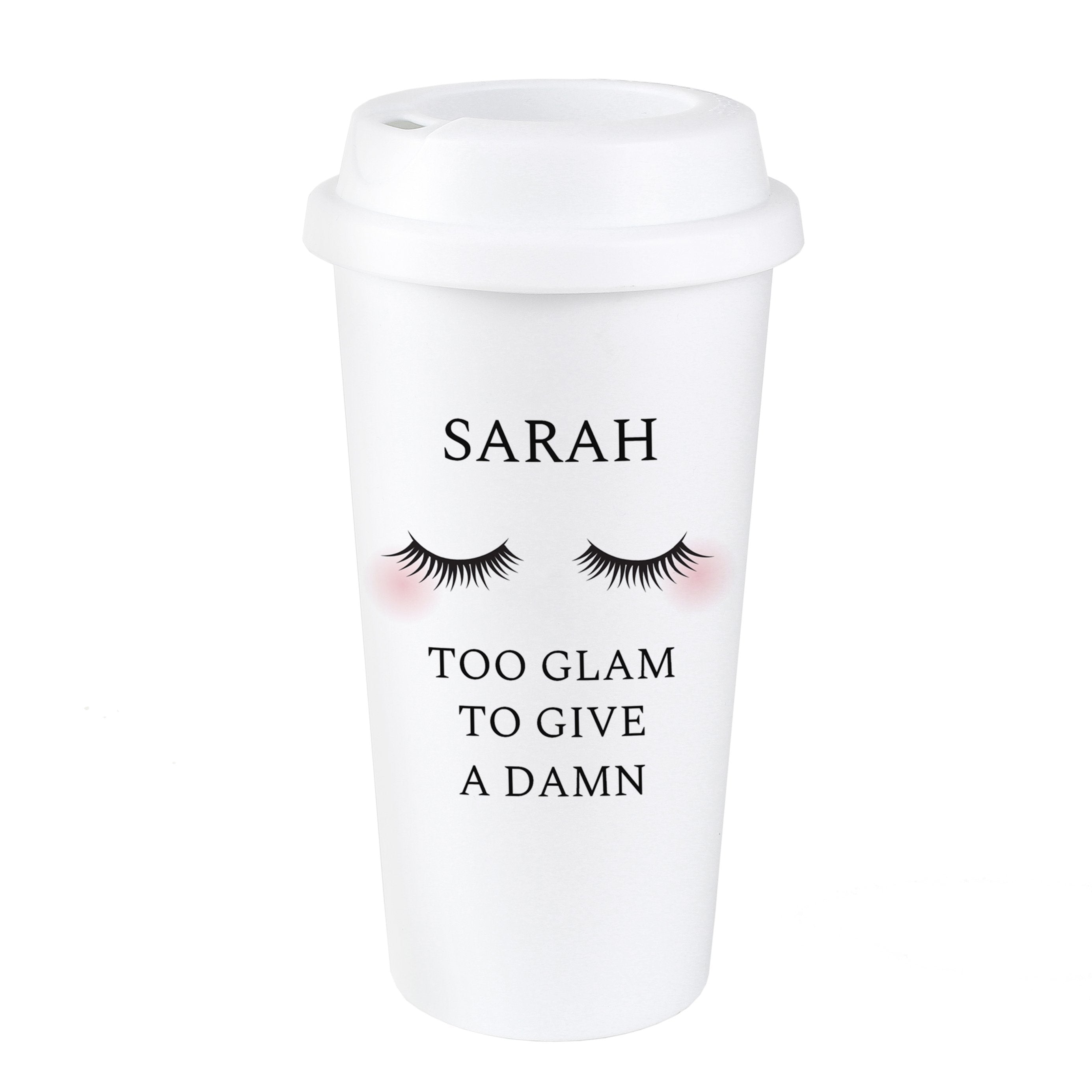 Personalised Eyelashes Double Walled Travel Mug. This personalised travel mug is a great way to help save the plant by not generating waste from plastic or paper cups from your coffee.