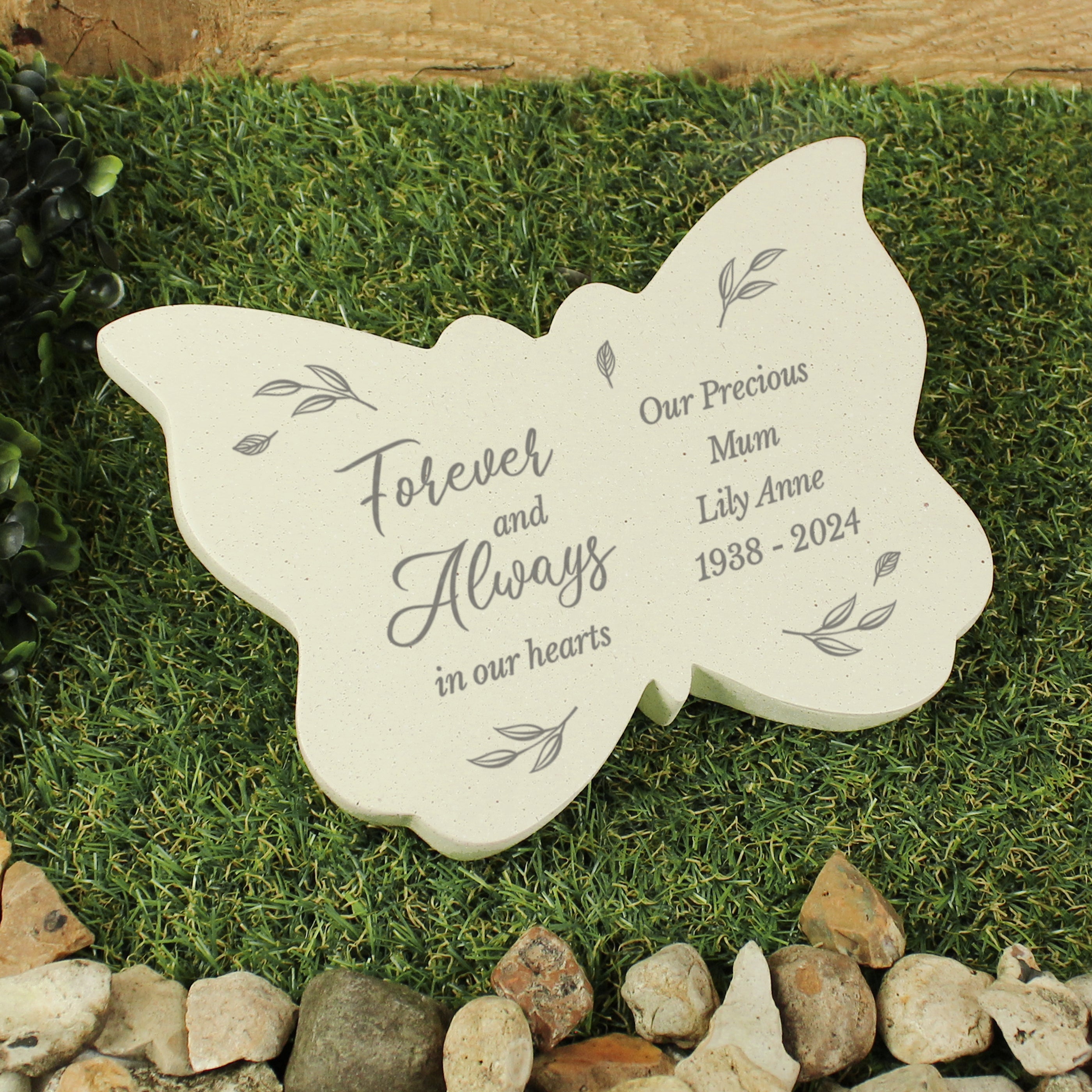 Personalised Forever and Always Resin Memorial Butterfly. This Personalised Butterfly resin ornament is a perfect way to remember a dearly missed loved one.