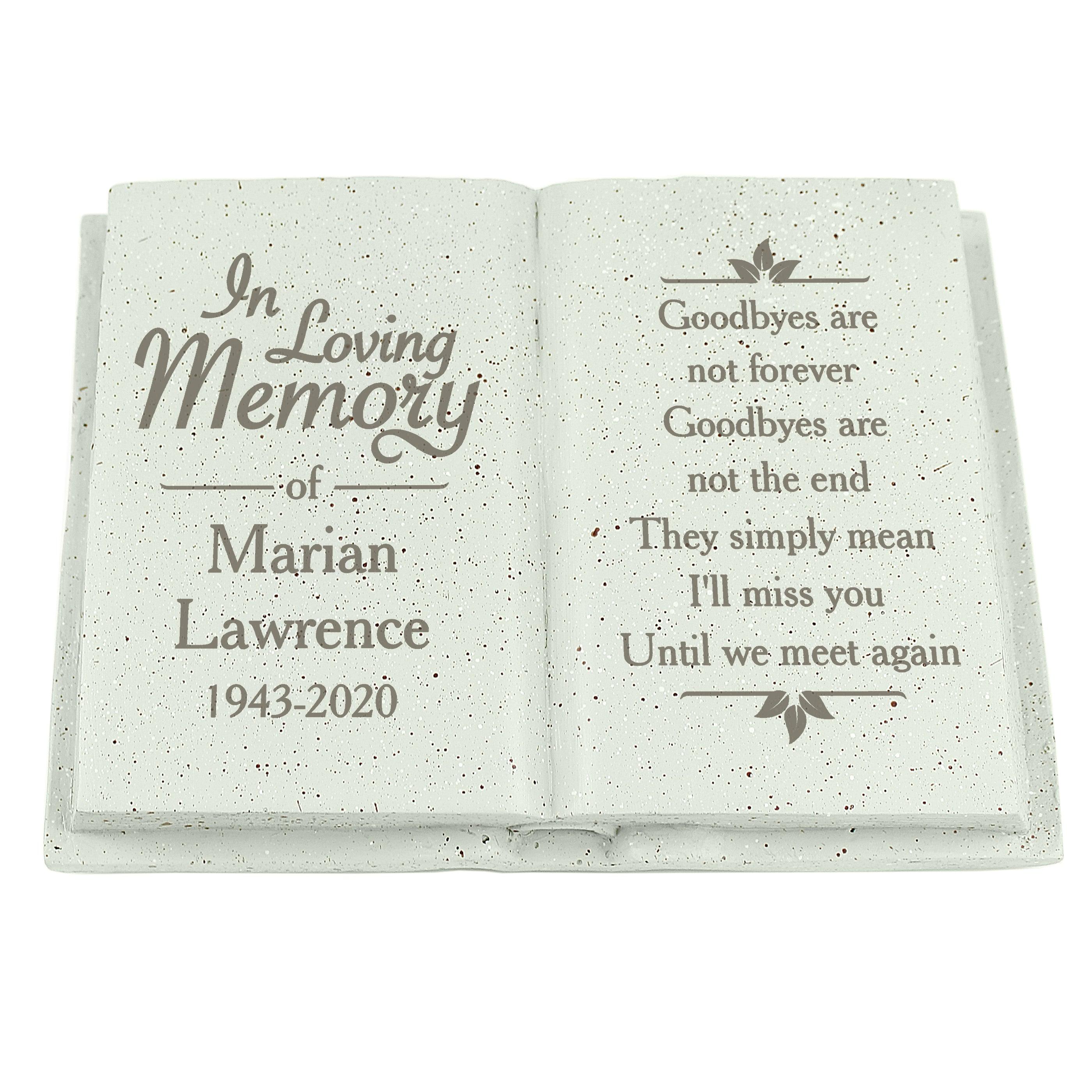 Personalised In Loving Memory Resin Memorial Book. This memorial graveside ornament with a "In Loving Memory" design is a lovely way to remember a loved one.