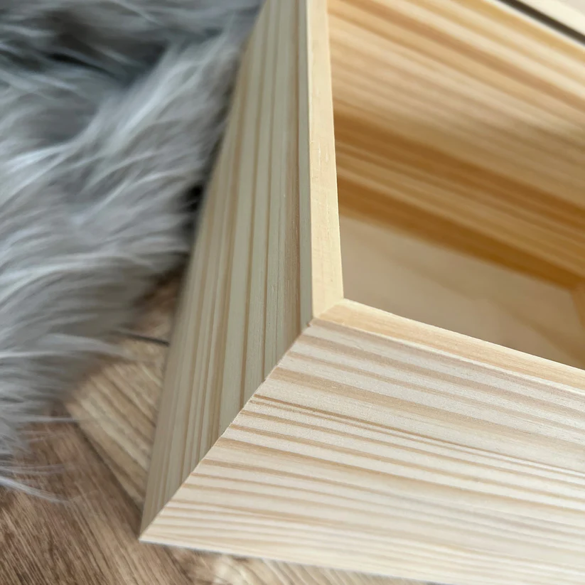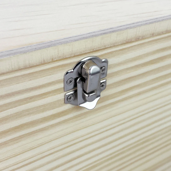 Made from natural pine wood, this box may show slight natural variations. It includes sturdy metal hinges and a reliable metal clasp to ensure your keepsakes stay safely inside.