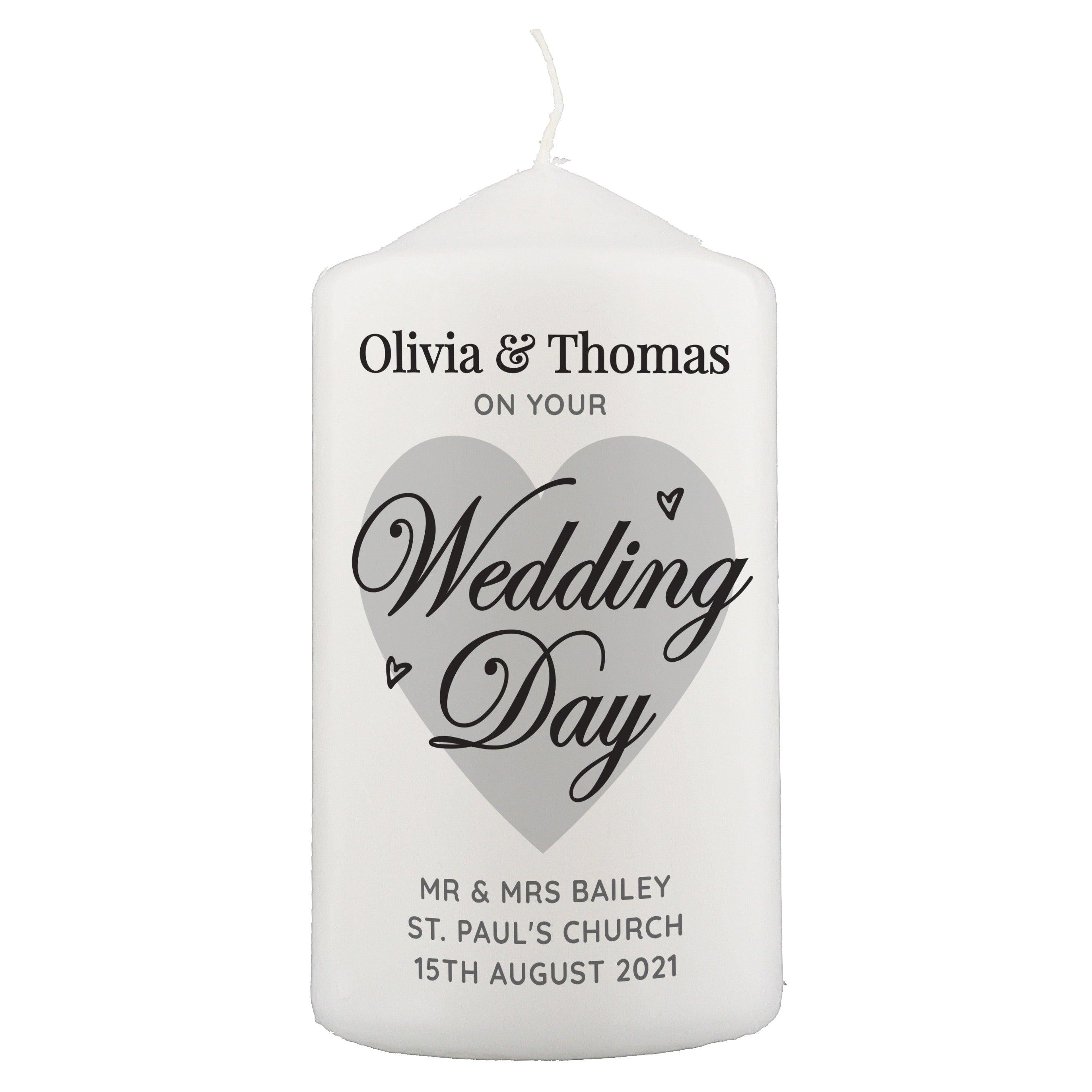 Personalised On Your Wedding Day Wax Pillar Candle