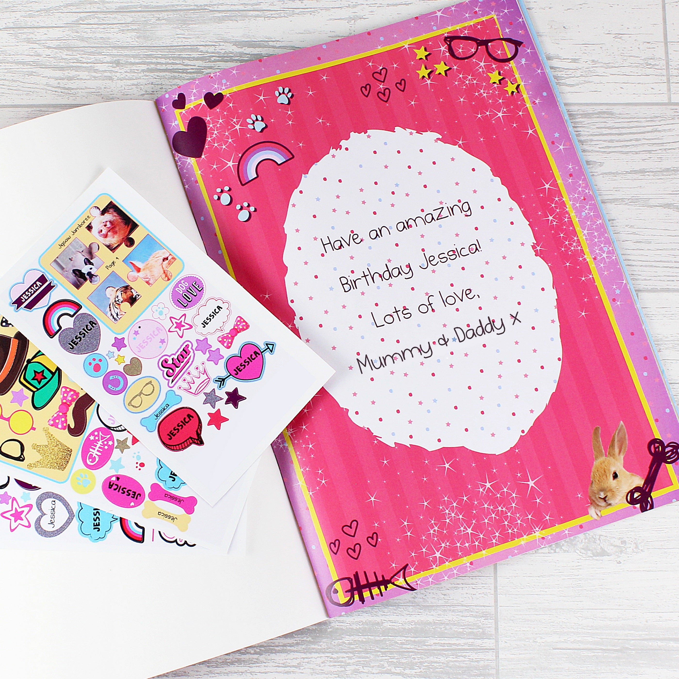 Personalised Rachael Hale Adorable Animals Activity Book With Stickers. Bring endless joy and creativity to little ones with the Personalised Rachael Hale Adorable Animals Activity Book with Stickers. This charming activity book features delightful animal illustrations by Rachael Hale, inviting children to colour, doodle, and play while learning. Personalised with your child’s name, it adds a special touch that makes every page more engaging. Packed with fun puzzles and vibrant stickers, it encourages imagination and fine motor skills. Perfect for keeping kids entertained at home or on the go, this book turns screen time into quality creative play. A lovely gift that children will cherish!