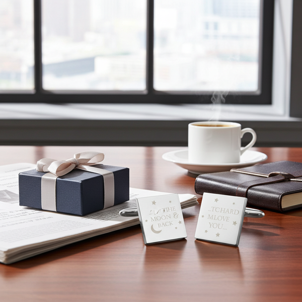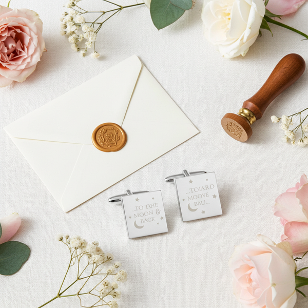 Declare your boundless love with these beautifully crafted square cufflinks, a meaningful accessory that captures the depth of your devotion. Personalised to perfection, they're an intimate gift for anniversaries, weddings, or any moment you want to remind your beloved just how far your heart reaches.