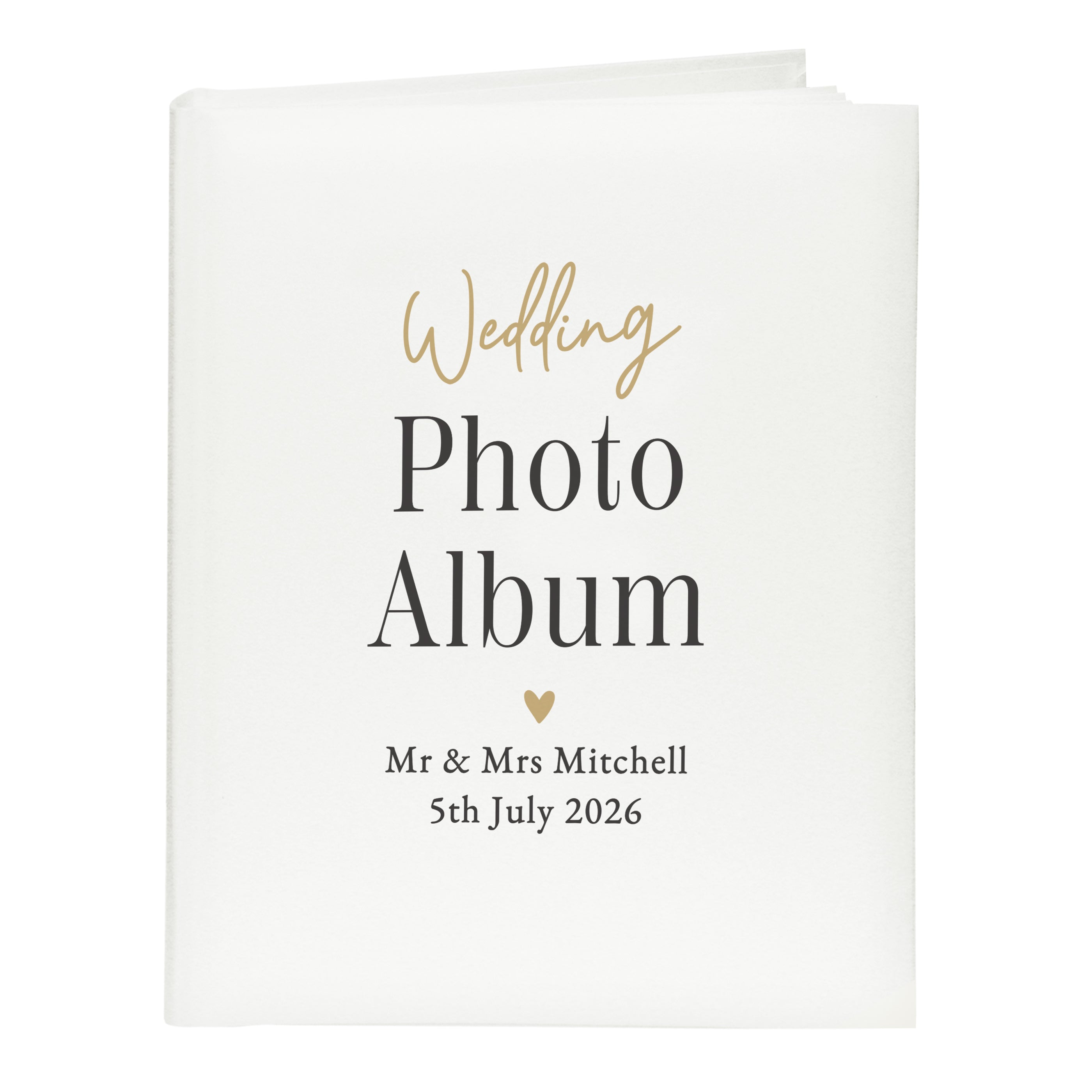 Personalised Black & Gold Free Text Traditional Album. Create a beautiful keepsake of your wedding day with our specially designed traditional photo album. This personalised album is the perfect way to store and display the cherished memories from your special day. Celebrate your love story and keep those precious moments alive for years to come. Capture every smile, every tear, and every laugh in this stunning collection that you can share with friends and family or look back on in the years to come. Make your memories last a lifetime with a unique photo album that reflects your personal style.