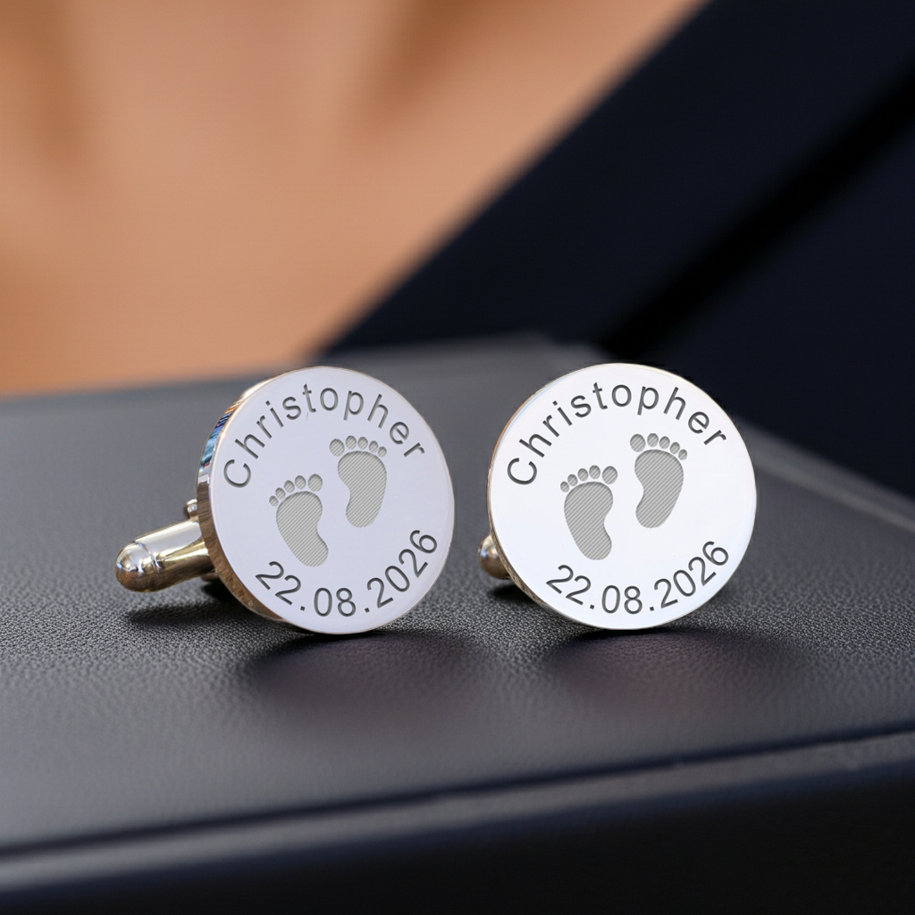 Personalised New Daddy Cufflinks Silver Finish. Mark the exciting journey into fatherhood with our Personalised New Daddy Cufflinks in a polished silver finish. These stylish cufflinks can be customised with a special message or initials, making them a perfect keepsake to celebrate the arrival of your little one. Designed to add a touch of class to any outfit, they’re ideal for dressing up on those proud new daddy moments. Give a gift that’s both thoughtful and timeless, reminding every new dad of the incredible joy and love this new chapter brings.